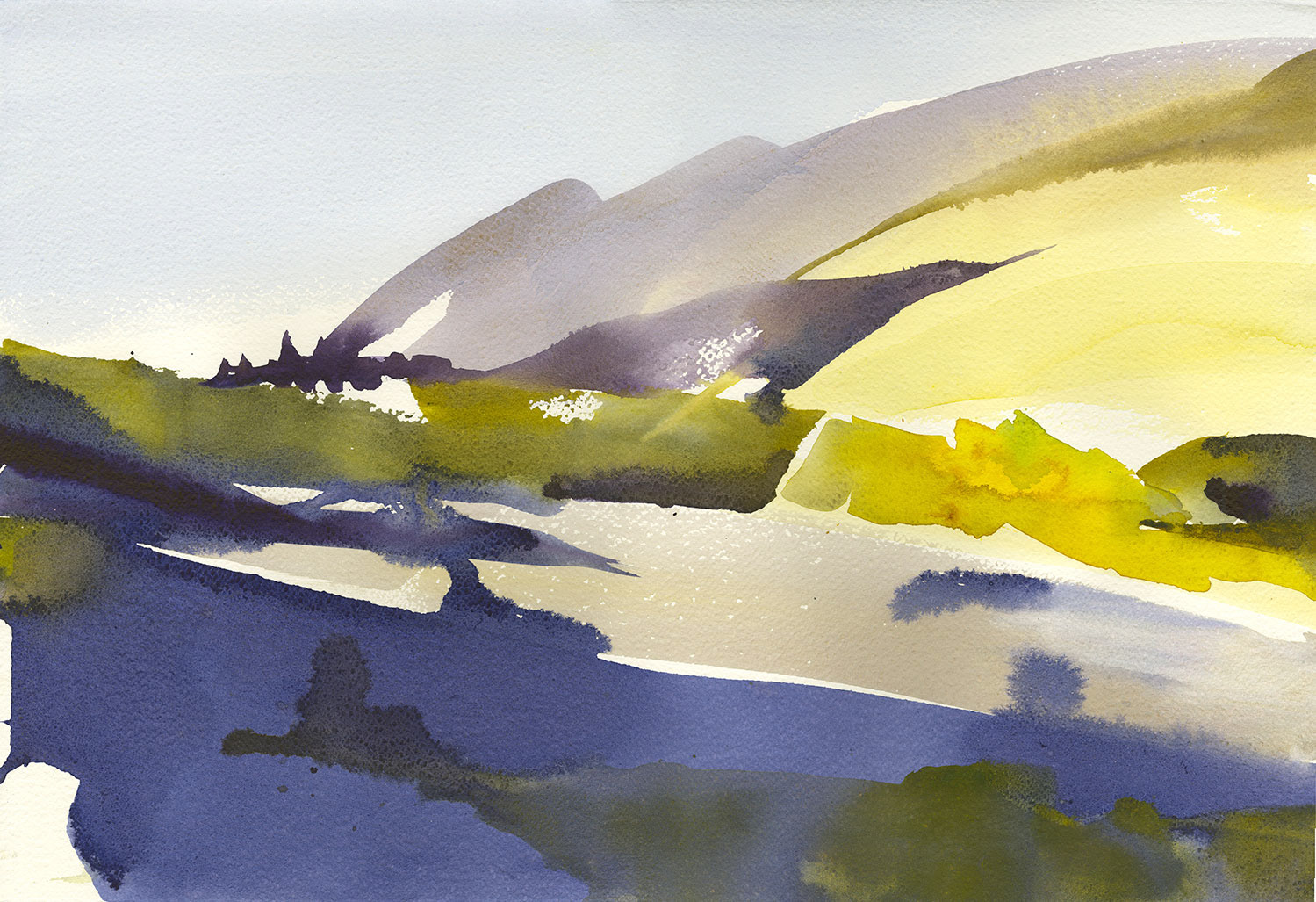 Flowing Hills, 2016, Watercolor, 22 x 15"