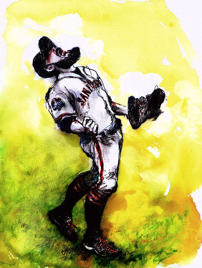 Romo celebrates Girants' World Series win, 2012, Watercolor and Gel Pen